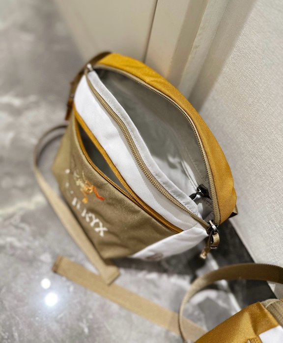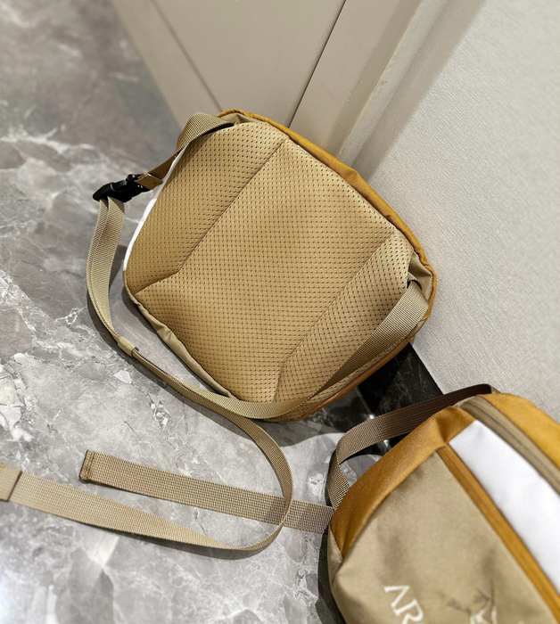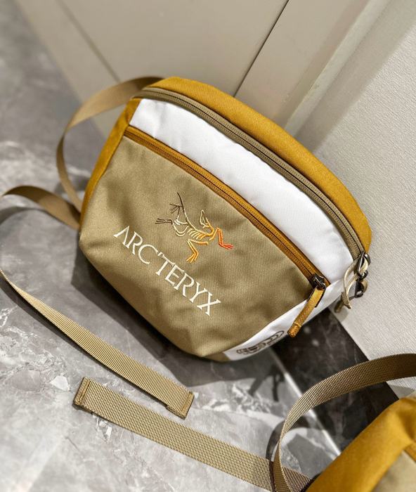 Introducing the Arc’teryx crossbody bag in a stylish tan, perfect for outdoor adventures and everyday use. Measuring 26x20cm, this compact yet spacious bag is designed to complement your Arc’teryx apparel seamlessly. Crafted for durability and comfort, it features an adjustable strap and multiple pockets for easy organization. Elevate your gear with this essential accessory that combines functionality and style, making it a must-have for any adventure seeker.
