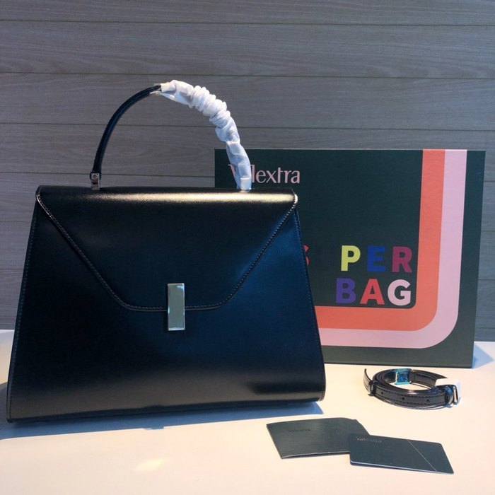 This black Valextra bag is crafted from premium leather, offering a timeless and sophisticated accessory for