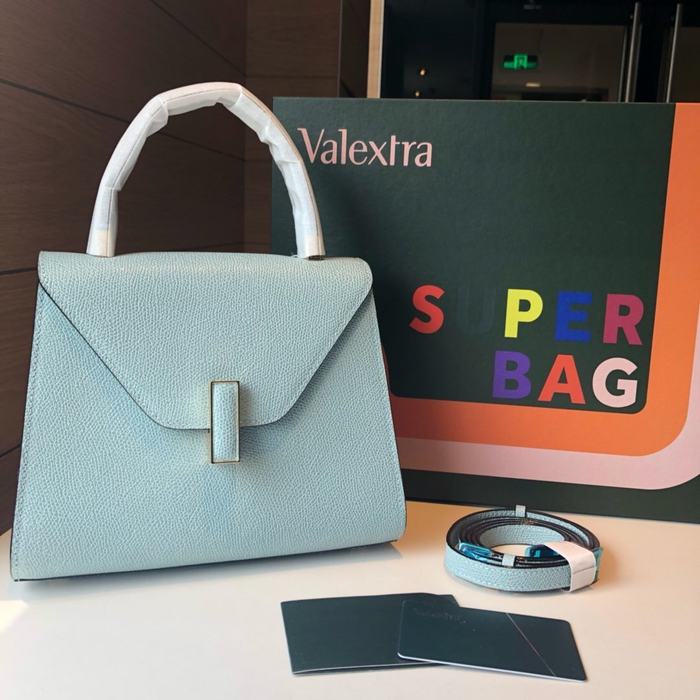 This blue Valextra bag is crafted from premium leather, offering a sophisticated and timeless accessory for any elegant occasion