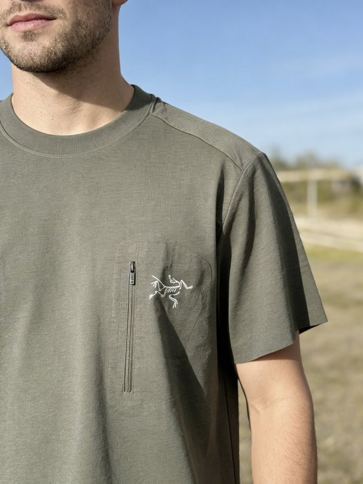 Elevate your casual wardrobe with the Arc’teryx short sleeve T-shirt in a stylish tan hue. Crafted from high-quality materials, this shirt offers exceptional comfort and durability, making it perfect for outdoor adventures or everyday wear. The iconic Arc’teryx logo showcases your love for premium outdoor clothing. Pair it effortlessly with shorts or jeans for a laid-back look. Experience the perfect blend of functionality and style with this essential piece from ARCTERYX.