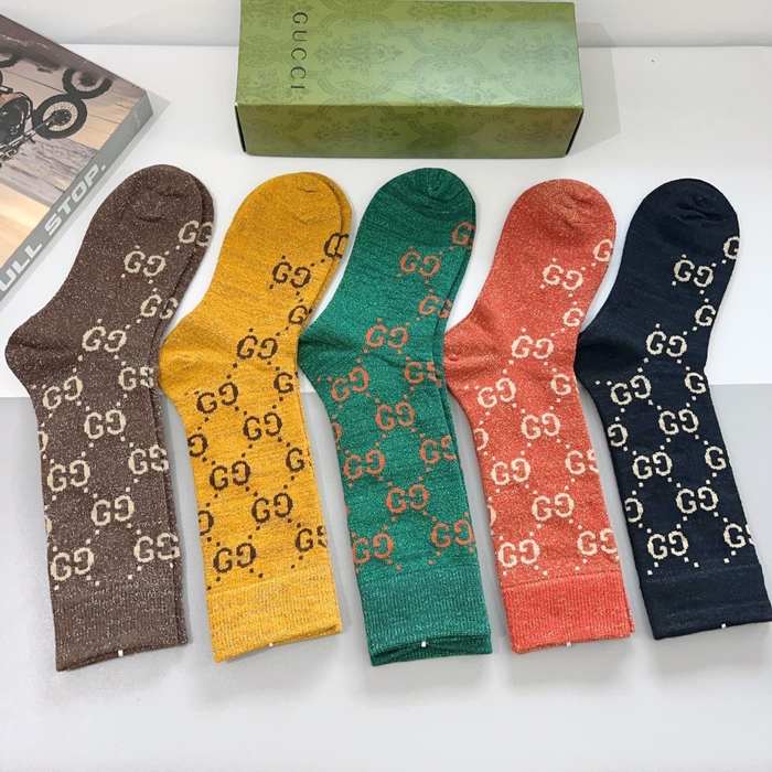 Trendy Gucci Logo Pattern Socks in Black with Vibrant Colors