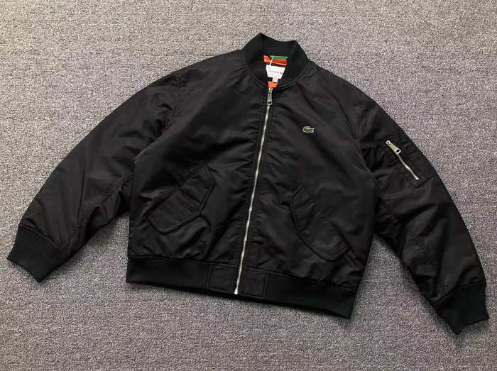 Elevate your wardrobe with the Lacoste bomber jacket in striking green and black. This stylish bomber jacket combines a modern silhouette with the iconic Lacoste branding, making it a perfect choice for both casual outings and sporty adventures. Crafted from high-quality materials, it ensures comfort and durability while providing a trendy layer for any season. Available in size Min, this jacket is a must-have for those looking to make a statement with their apparel. Embrace effortless style with Lacoste!