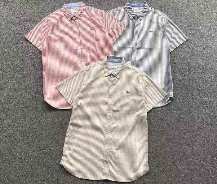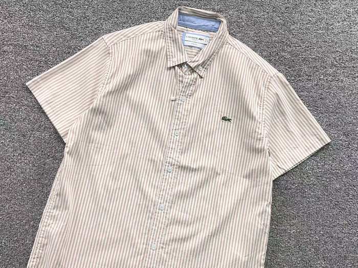 Elevate your casual wardrobe with the Lacoste short sleeve striped shirt, available in a stylish blend of red, beige, and grey. This versatile grey shirt offers a perfect balance of comfort and sophistication, making it ideal for any occasion. Crafted from high-quality materials, it features a classic fit and the iconic Lacoste logo, ensuring you make a statement wherever you go. Pair it with your favorite jeans or shorts for a chic, effortless look. Available in size Lin, this shirt is a must-have for the modern man.
