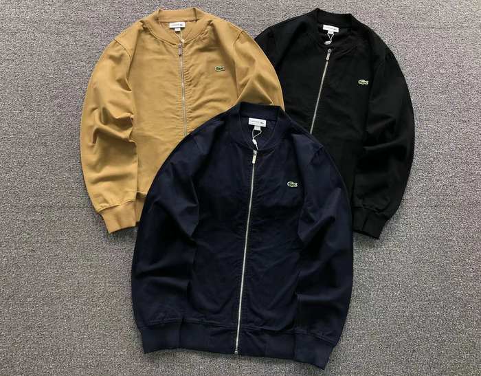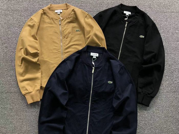 Elevate your casual style with the Lacoste zip-up bomber jacket, available in classic Black, Navy, and Khaki. Designed for comfort and versatility, this stylish jacket features a sleek zip closure and a modern fit, making it perfect for layering or wearing on its own. Crafted from high-quality materials, it ensures durability while providing a polished look for any occasion. Available in size S, this jacket is a must-have addition to your wardrobe, combining sporty flair with the iconic Lacoste brand.