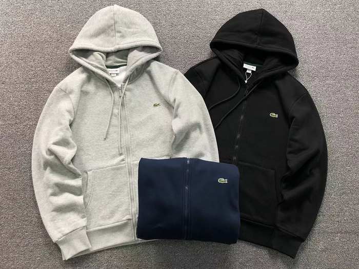 Elevate your casual wear with the Lacoste zip-up hoodie, available in Light Grey, Black, and Navy. Designed for comfort and style, this hoodie features the iconic Lacoste crocodile logo, showcasing your love for quality fashion. Perfect for layering or wearing on its own, it’s crafted from soft, breathable fabric that ensures a relaxed fit for all-day wear. Whether you’re heading to the gym or out with friends, this versatile piece is a must-have addition to your wardrobe. Available in size Min 001.
