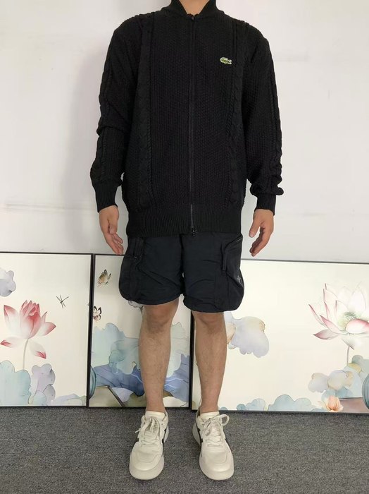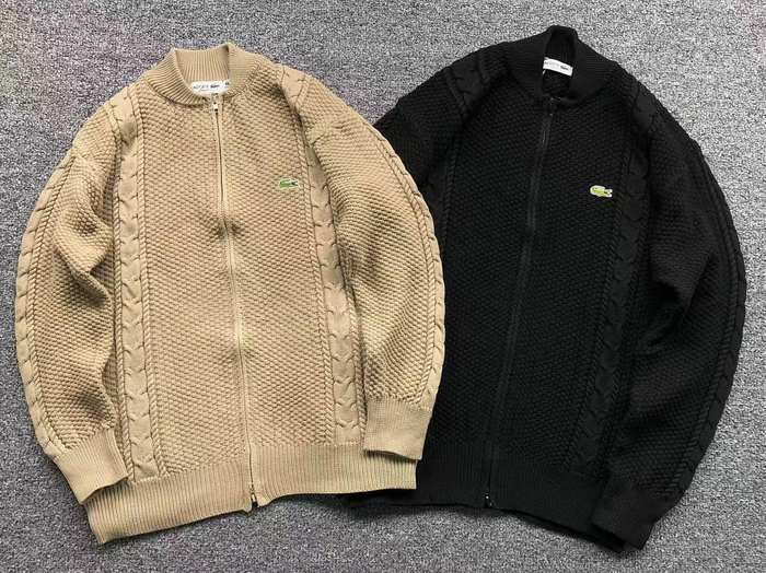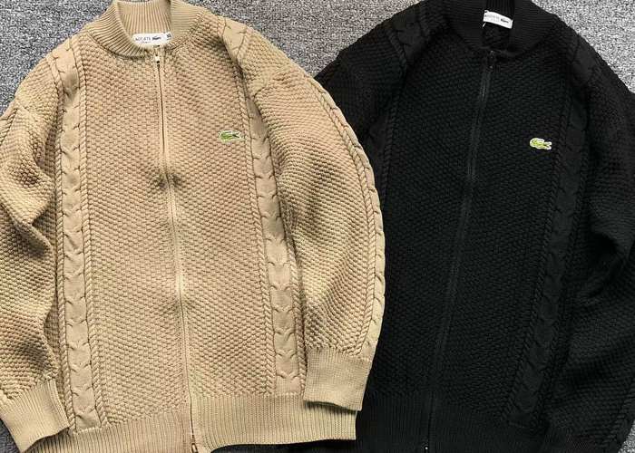Elevate your wardrobe with the Lacoste zip up knit sweater in a stylish beige and black design. Crafted from premium materials, this versatile piece offers both comfort and sophistication, making it perfect for any occasion. The zip closure allows for easy layering, while the iconic Lacoste logo adds a touch of timeless elegance. Available in size Lin, this sweater is a must-have addition to your Lacoste clothing collection. Stay chic and cozy with this essential sportswear staple.