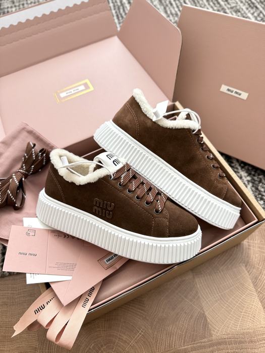 These Miu Miu shearling platform sneakers offer a blend of warmth and modern style for women. Each pair features premium materials and a sturdy platform sole, ensuring both comfort and durability. Available in sizes 35 to 40, these shoes are crafted to meet AAA standards, providing top quality at a wholesale price. You can find detailed images and more information in our Yupoo gallery. Designed for daily wear, these sneakers provide a sophisticated look while maintaining a practical fit for the colder months.