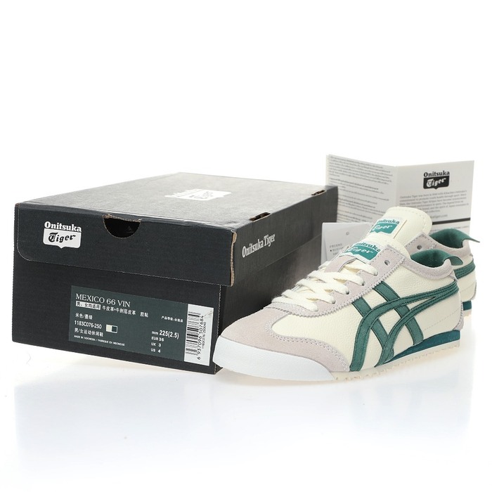 Onitsuka Tiger Mexico 66 Sneakers in Off White and Green – Available in Sizes 36-45