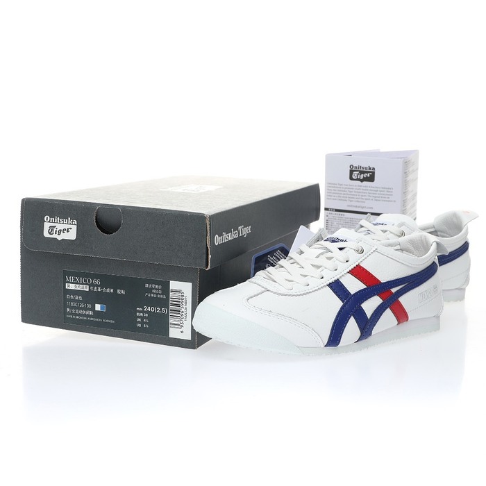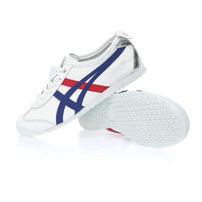 Onitsuka Tiger Mexico 66 Sneakers in White, Blue, Red, and Silver – Sizes 36-45